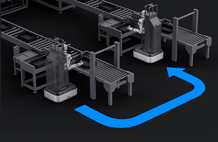 仿生七自由度双臂,支持并行及异步作业,可空中接力与换手,轻松应对复杂工件和特定位姿操作。